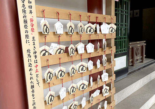拝殿近くの屋根のある場所への設置をお勧めしています。場合によっては屋根付き絵馬掛けのご相談をお受け致します。